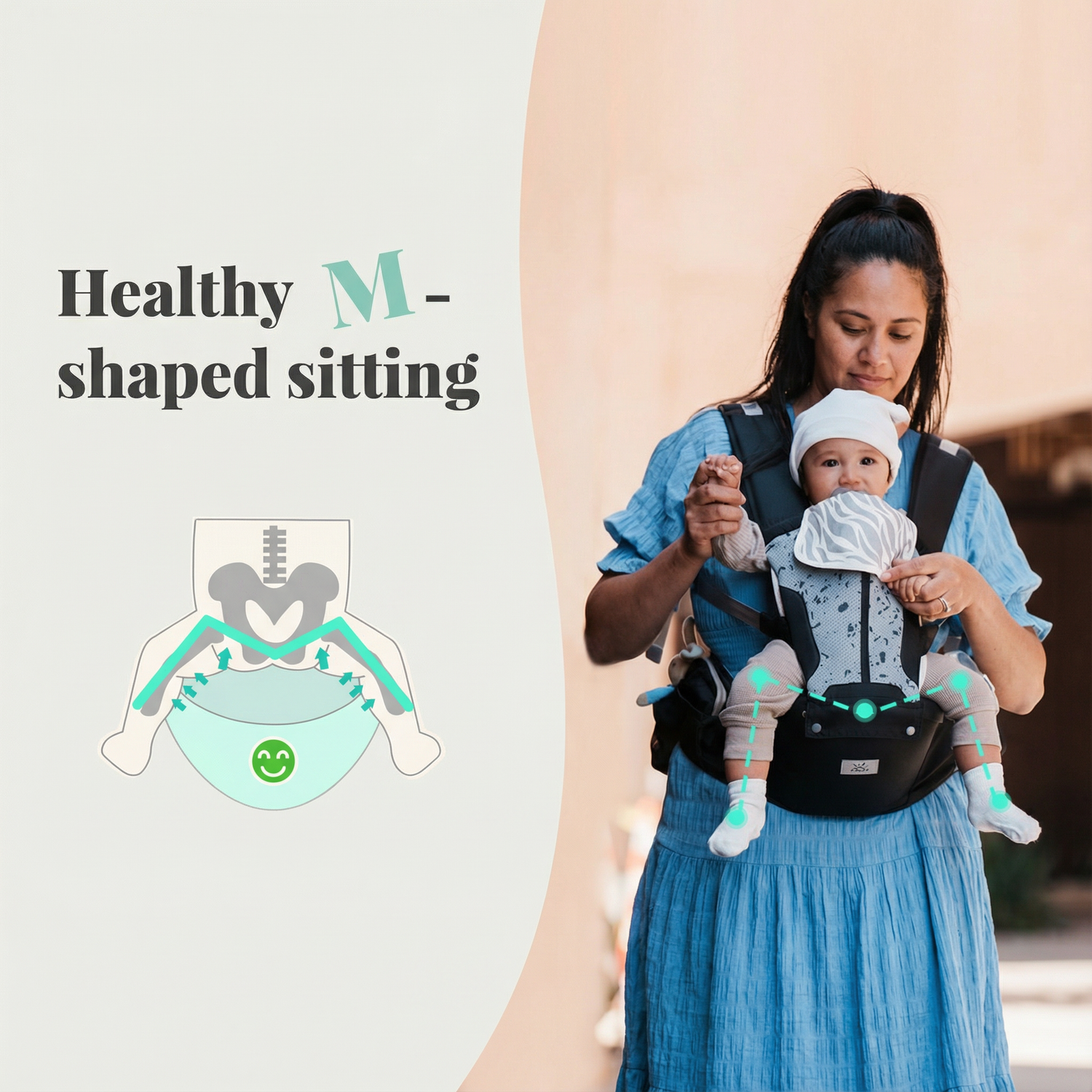 Pediatricians recommend the M-position (knees higher than hips) for proper hip development. Our ergonomic design keeps your baby's spine and hips in the ideal position—automatically. No complicated adjustments, just natural comfort for growing bodies.