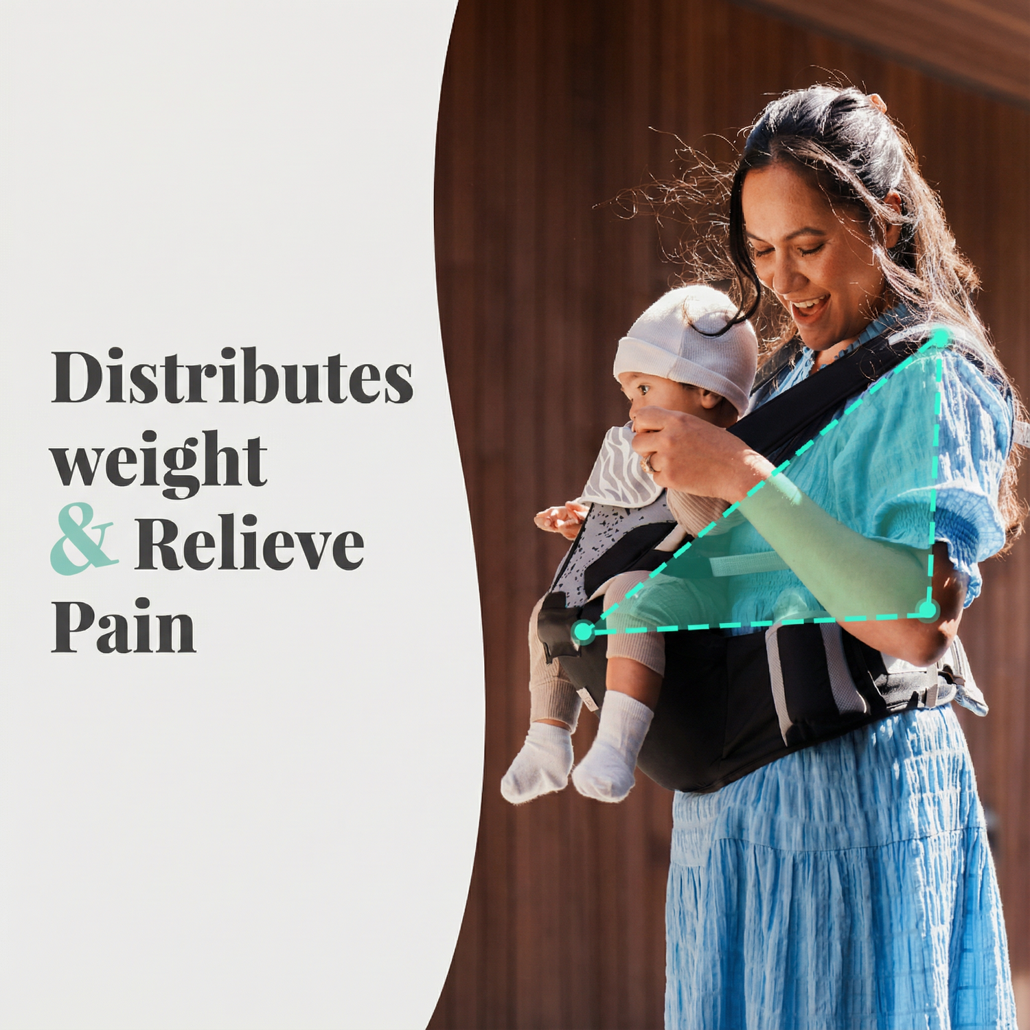 Wide, padded straps and a supportive waist belt distribute your baby's weight across your hips—not your shoulders and back. Wear your little one for hours without the pain. Because you shouldn't have to choose between comfort and closeness.
